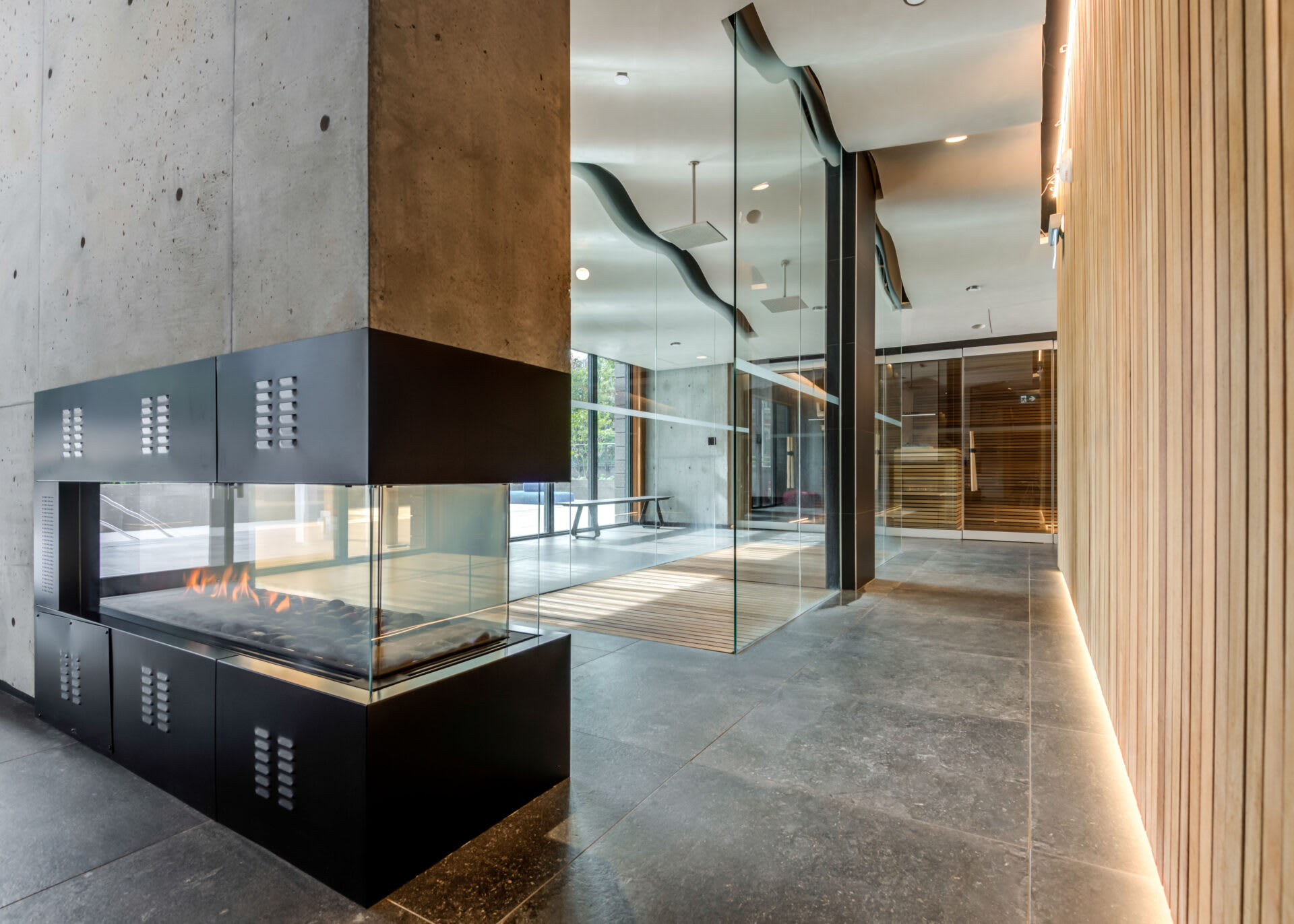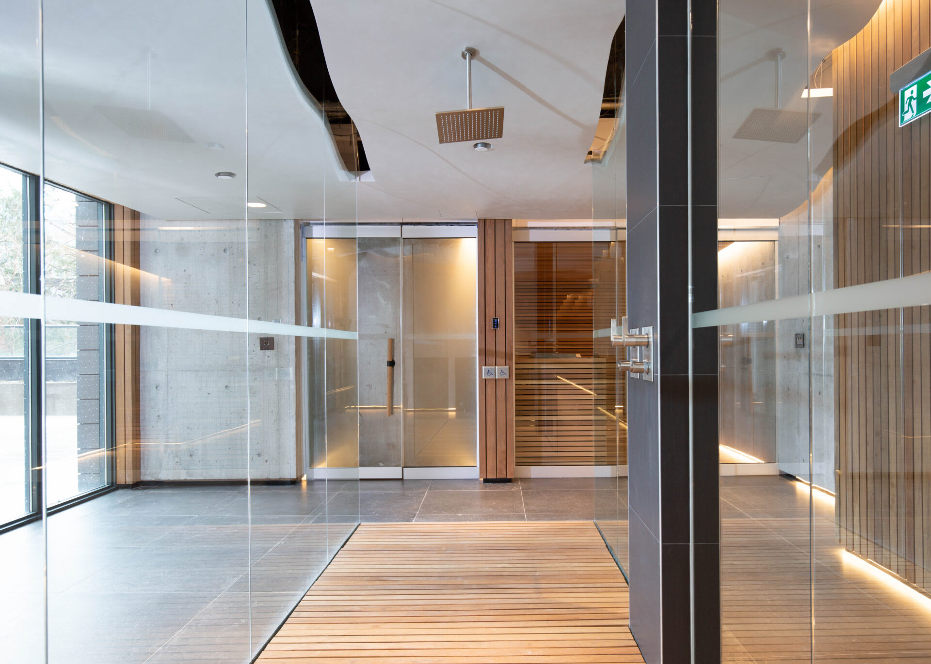 - Spa with dry sauna, steam room, deluge showers and meditation area